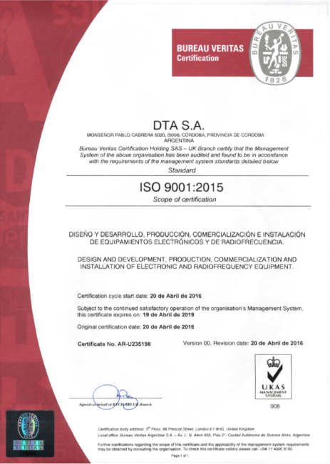 The Management of DTA S.A., is based on our Quality Management System, is fully committed to: